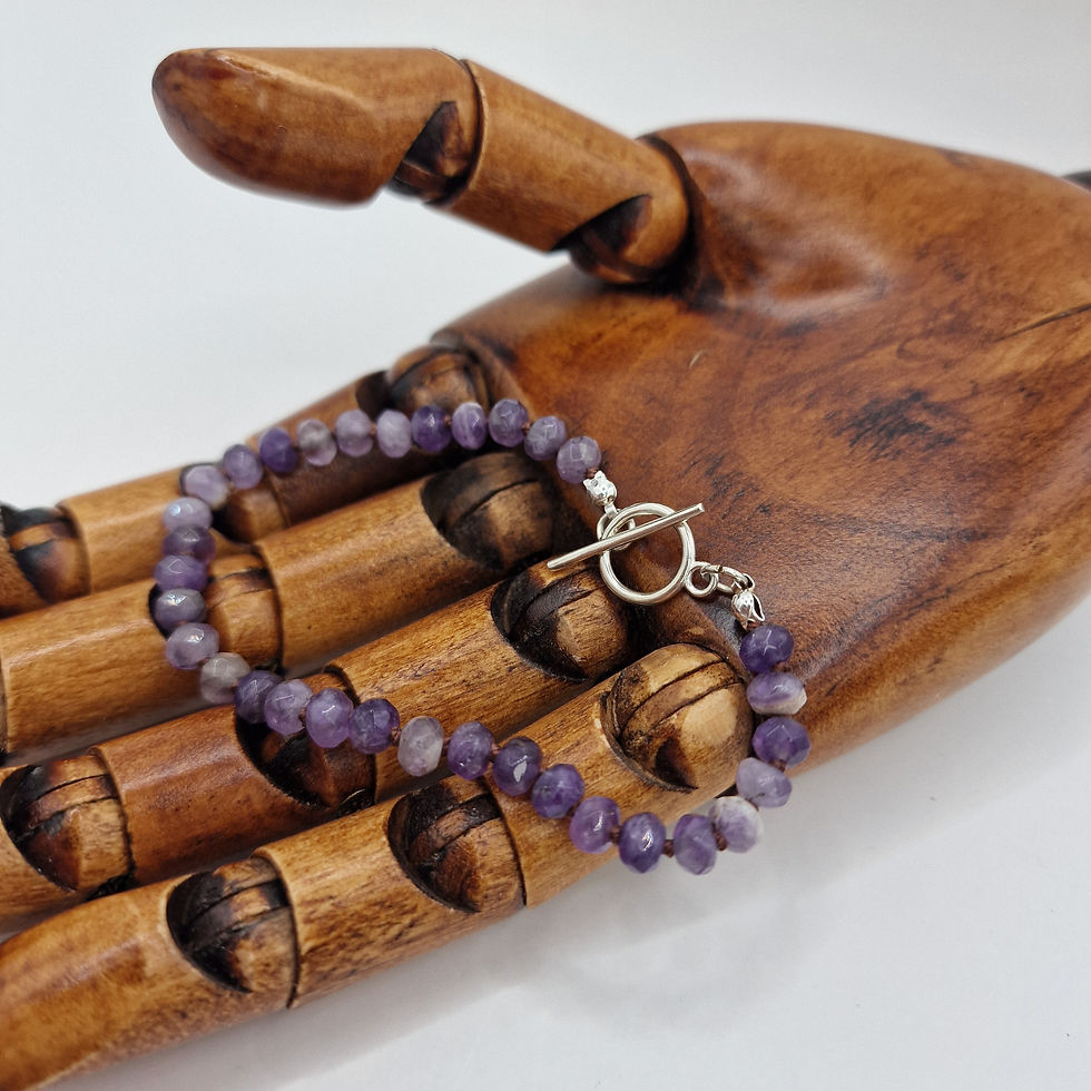 Hand knotted Amethyst rondelle bracelet with sterling toggle clasp